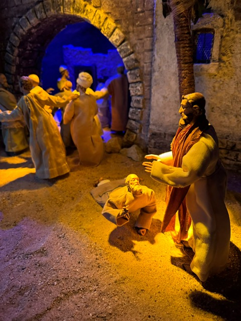 (nach Lukas 10, 25 - 37; Krippe und Bilder: Felix Werndl und Andreas Valentin; ein Mausklick vergrößert das Bild der Jahreskrippe)