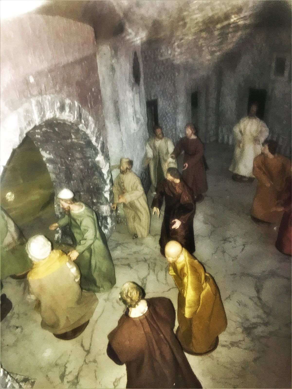(Lukuas 24, 13 -21; Krippe und Bilder: Felix Werndl; ein Mausklick vergrößert jeweils ein Bild der Jahreskrippe)
