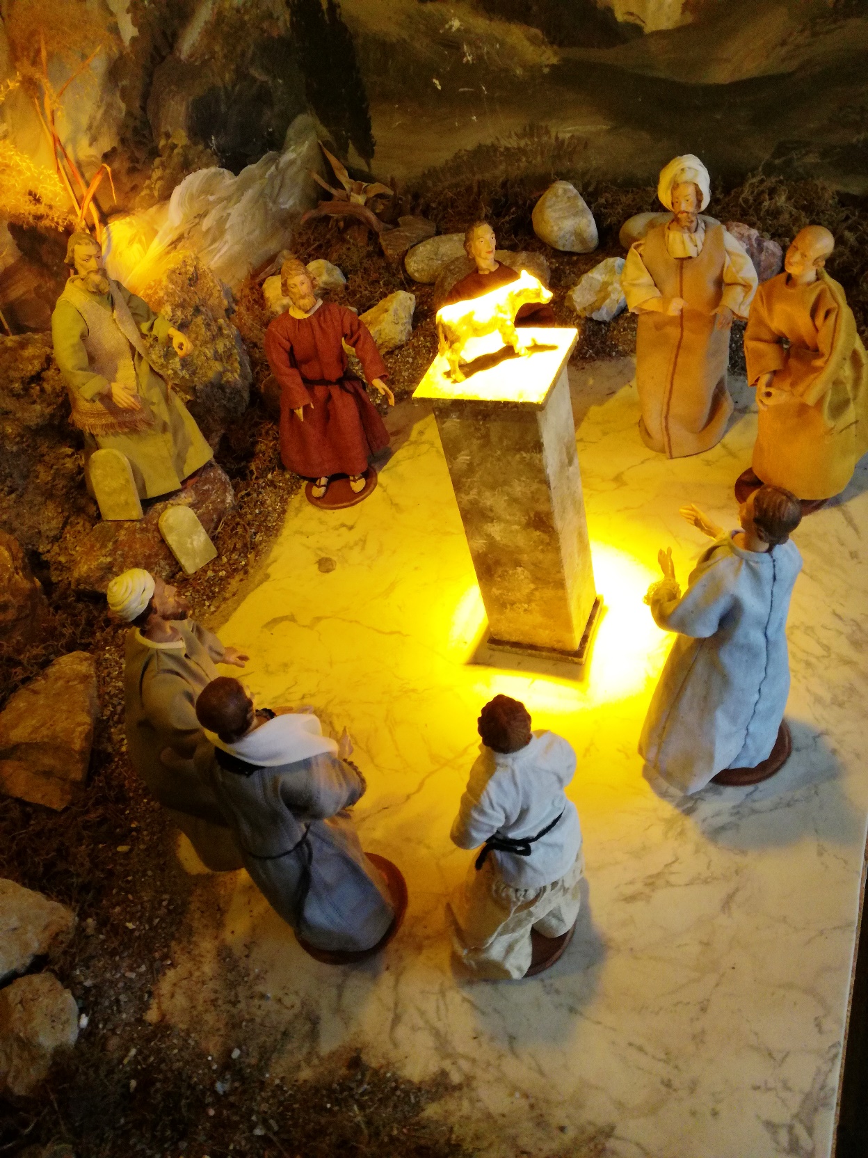 (Aus dem Buch Exodus 2.Mose 32, 1-8, 15-20; Krippe und Bilder: Felix Werndl; ein Mausklick vergrößert das Bild der Jahreskrippe)