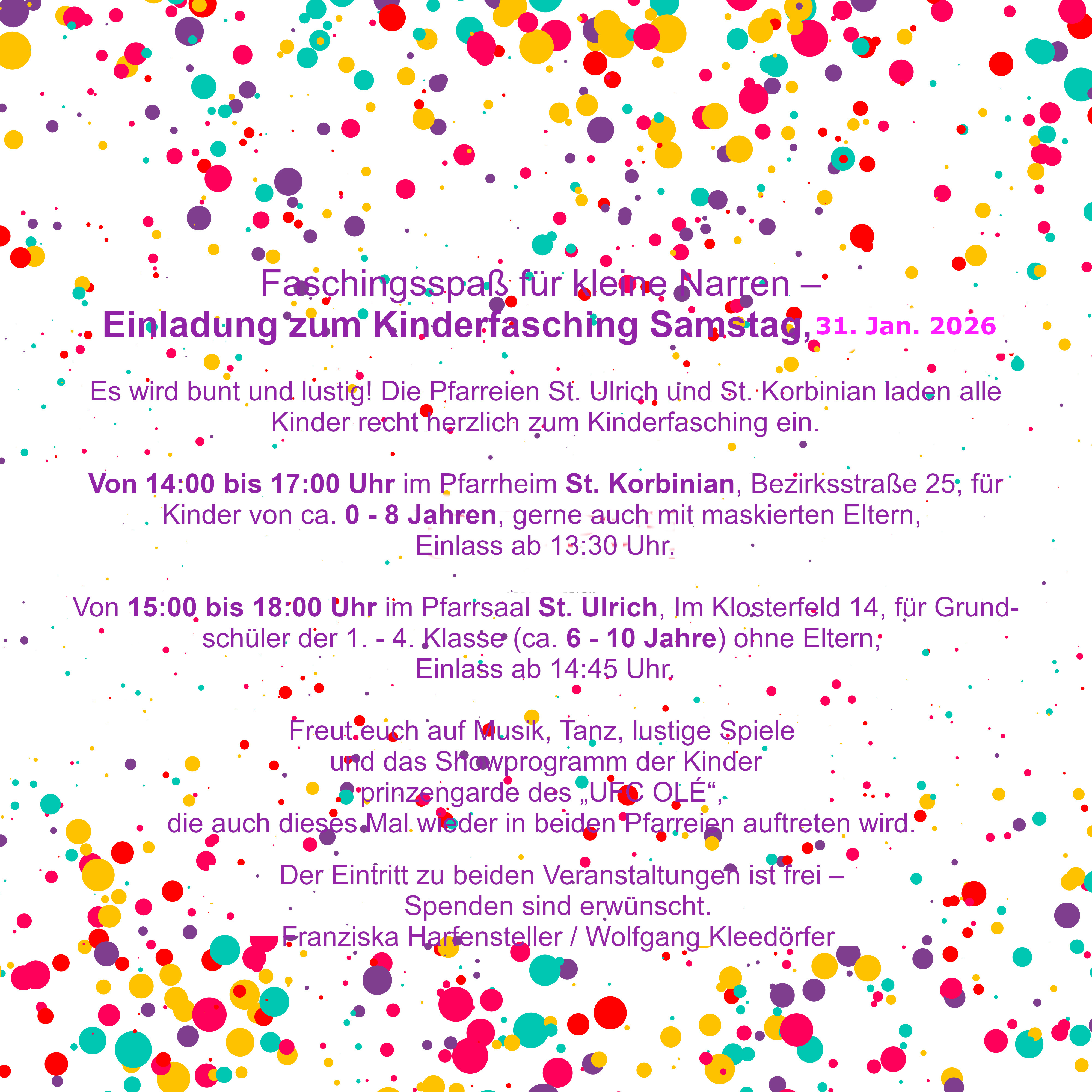 s.unten: Kinderfasching Sa. 31. Jan. 2026