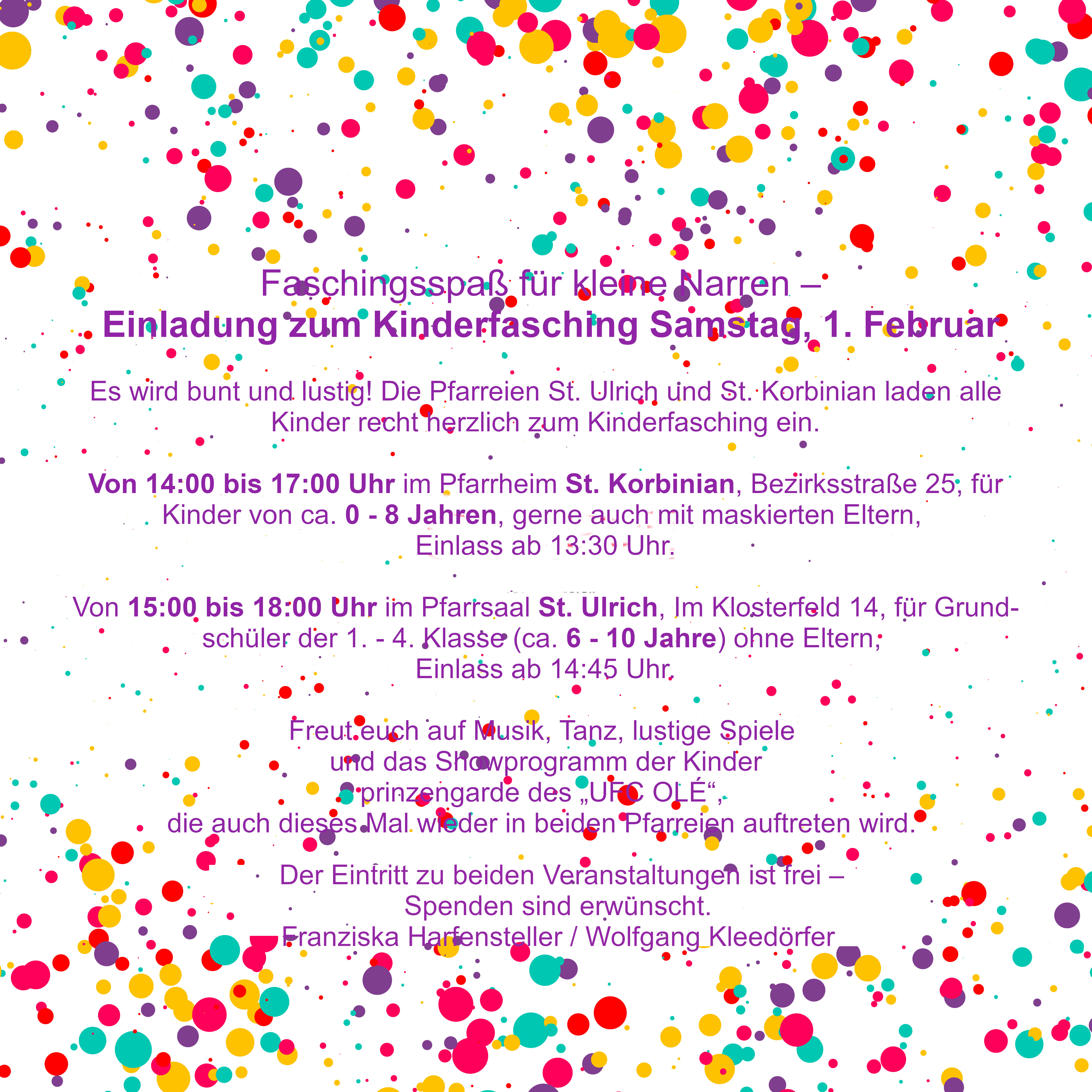 Es wird bunt und lustig! Die Pfarreien St. Ulrich und St. Korbinian laden alle