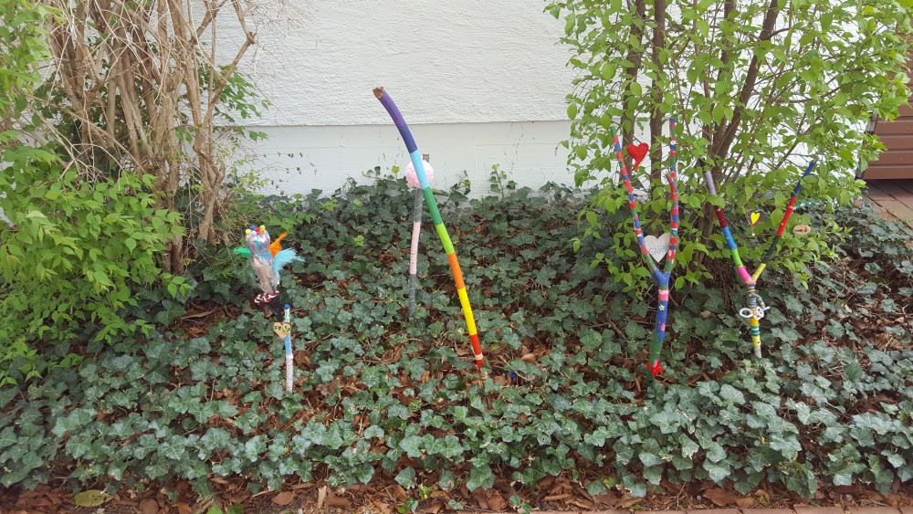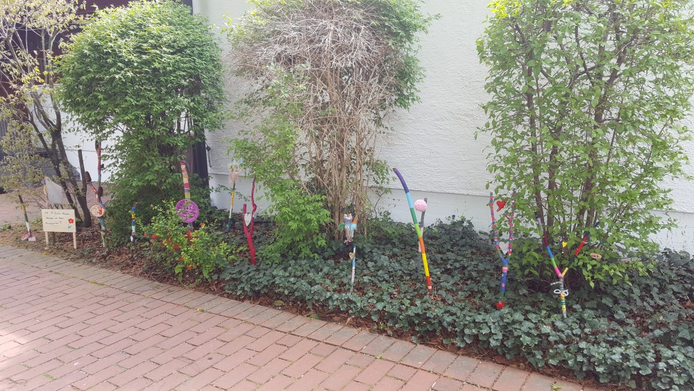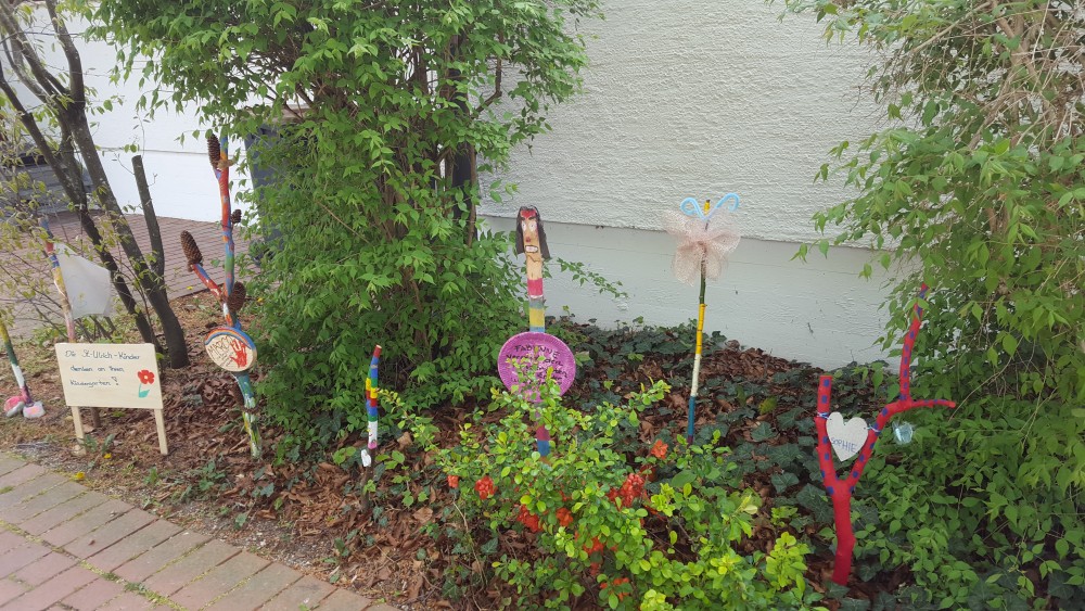 Vor ein paar Tagen entdeckten wir vor unserer Einrichtung Grüße unserer Kinder. Sie schreiben auf dem Schild, dass sie uns vermissen und einige Kinder haben Stöcke dazu gestaltet. Es kommen täglich neue Grüße hinzu. Diese Aktion rührt uns sehr.