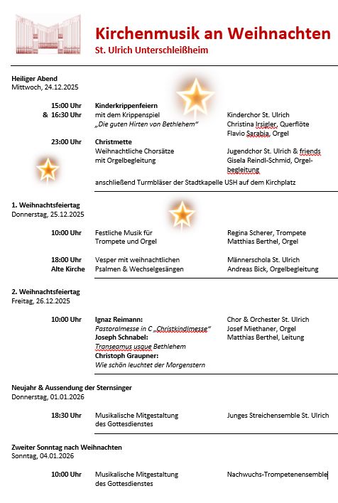 Kirchenmusik in St. Ulrich - ab 24. Dez. 2025