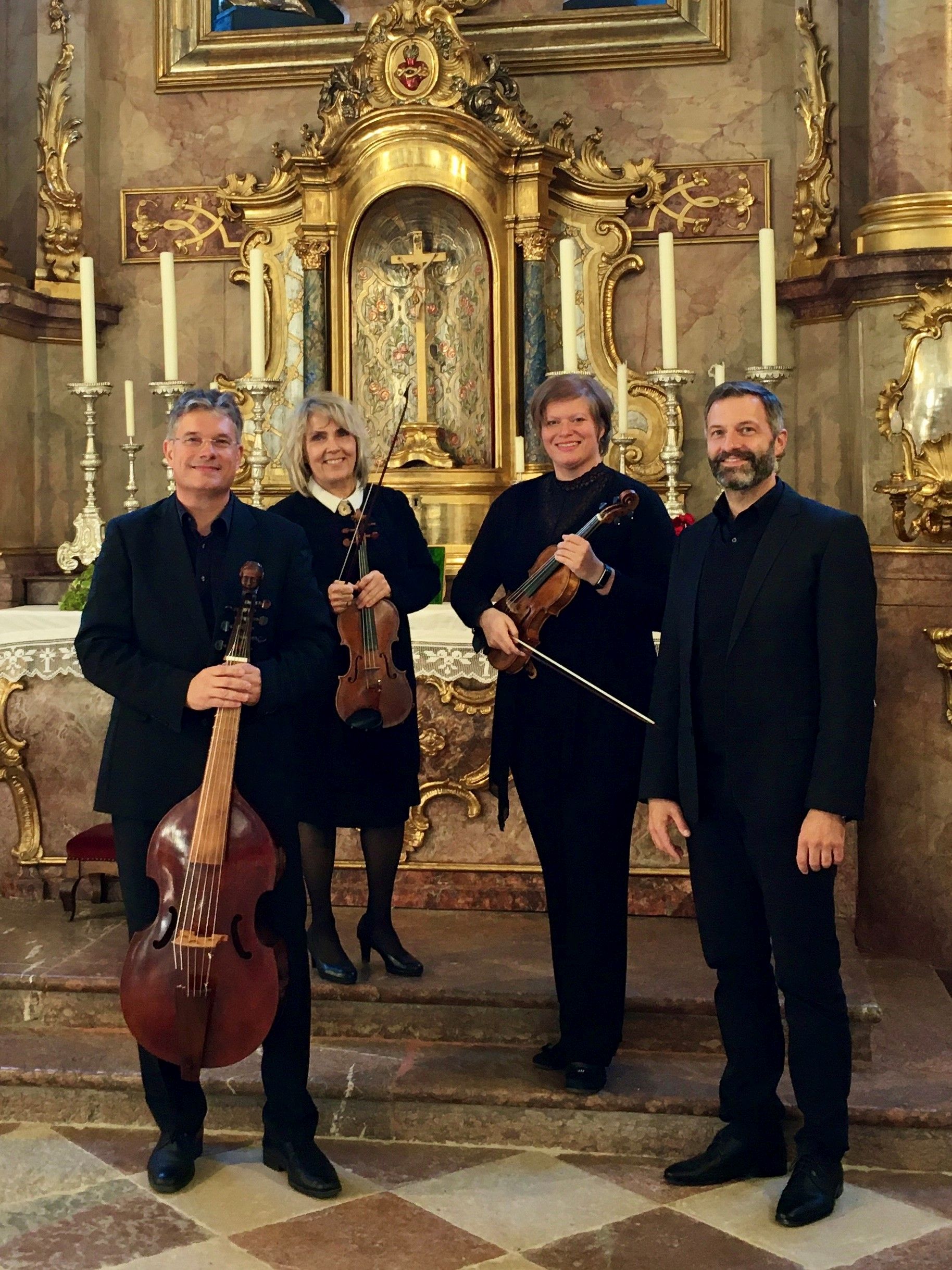 Das im Münchner Norden beheimatete Ensemble BAVAROCCO hat sich insbesondere der historischen Aufführungspraxis barocker Kammermusik verschrieben und seit vielen Jahren im Kulturleben der Region einen Namen gemacht. Es besteht derzeit aus Hildegard Senninger (Barockvioline), Almuth Botzky (Barockvioline), Matthias Berthel (Truhenorgel) und Günter Holzhausen (Viola da gamba und Bassetl). Die vier Musikerinnen und Musiker verbindet ihre Spielfreude und die ausgesprochene Leidenschaft zur barocken Kammermusik des süddeutschen Raums. Das Ensemble ist nun erneut in der Pfarrei St. Ulrich zu Gast.